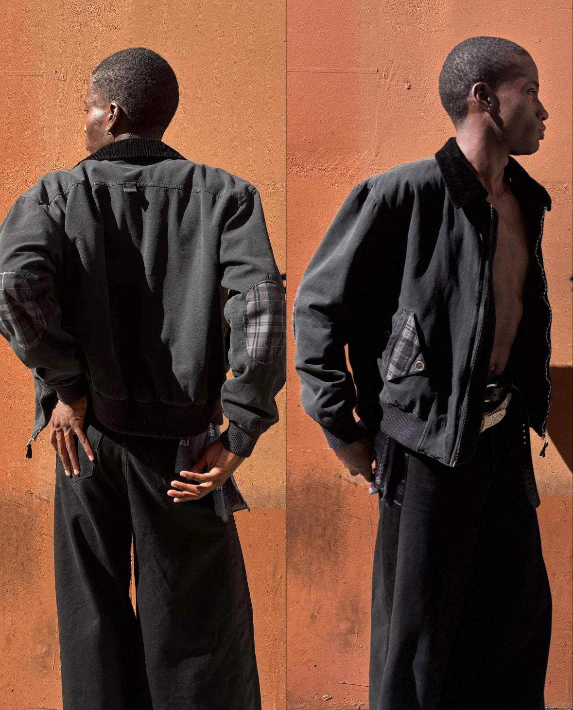 Crafted from 100% cotton wash duck canvas, this Plaid Bomber Jacket offers durable comfort. Featuring a soft corduroy collar and distinctive plaid accents, it's designed with five practical pockets four on the front with flexible button closures and one inside pocket. The diamond quilted lining provides additional warmth and structure, making it an ideal layering piece.